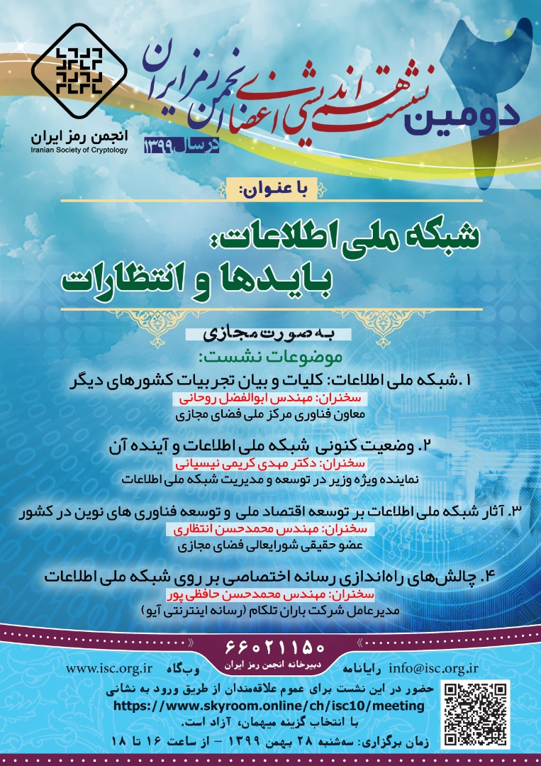 انجمن رمز ایران در ادامه نشستهای هماندیشی فصلی خود، با انتخاب موضوع «شبکه ملی اطلاعات: بایدها و انتظارات» در نشست هماندیشی فصل زمستان 99 ، به این موضوع و به بررسی ابعاد مختلف این شبکه میپردازد.