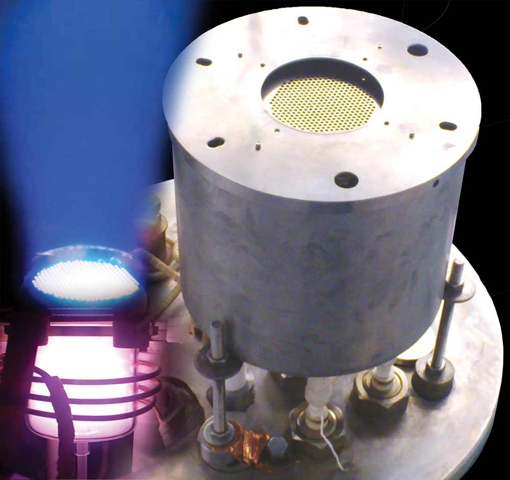 چشمه یون رادیوفرکانسی که توسط متخصصان گروه پژوهشی فناوری خلا بالا ساخته شده است، قابلیت یونیزاسیون انواع گازهای واکنش پذیر یا خنثی را دارد و نسبت به چشمه یونی جریان مستقیم(تولید قبلی این گروه)، از جریان یونی بسیار بالاتری برخوردار است.
