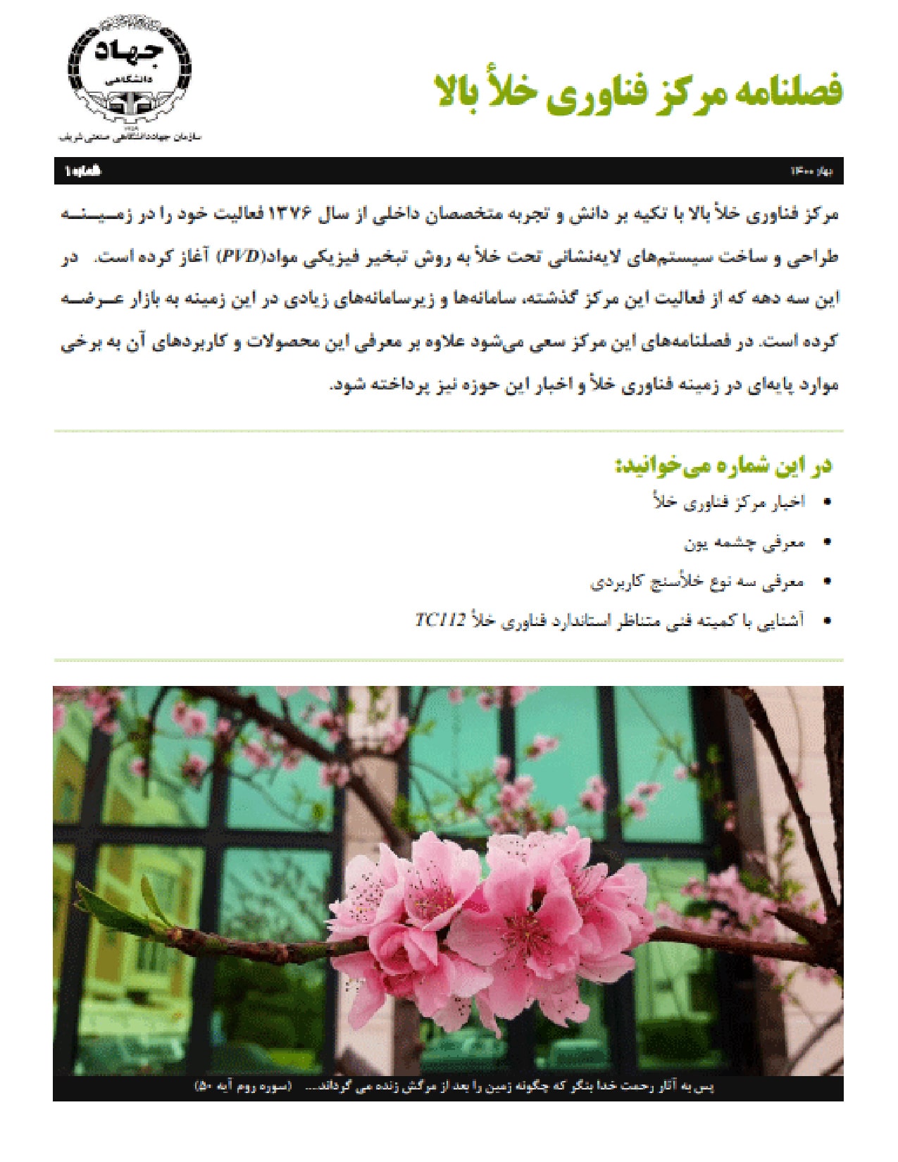 فصلنامه مرکز فناوری خلأ بالا “بهار 1400”